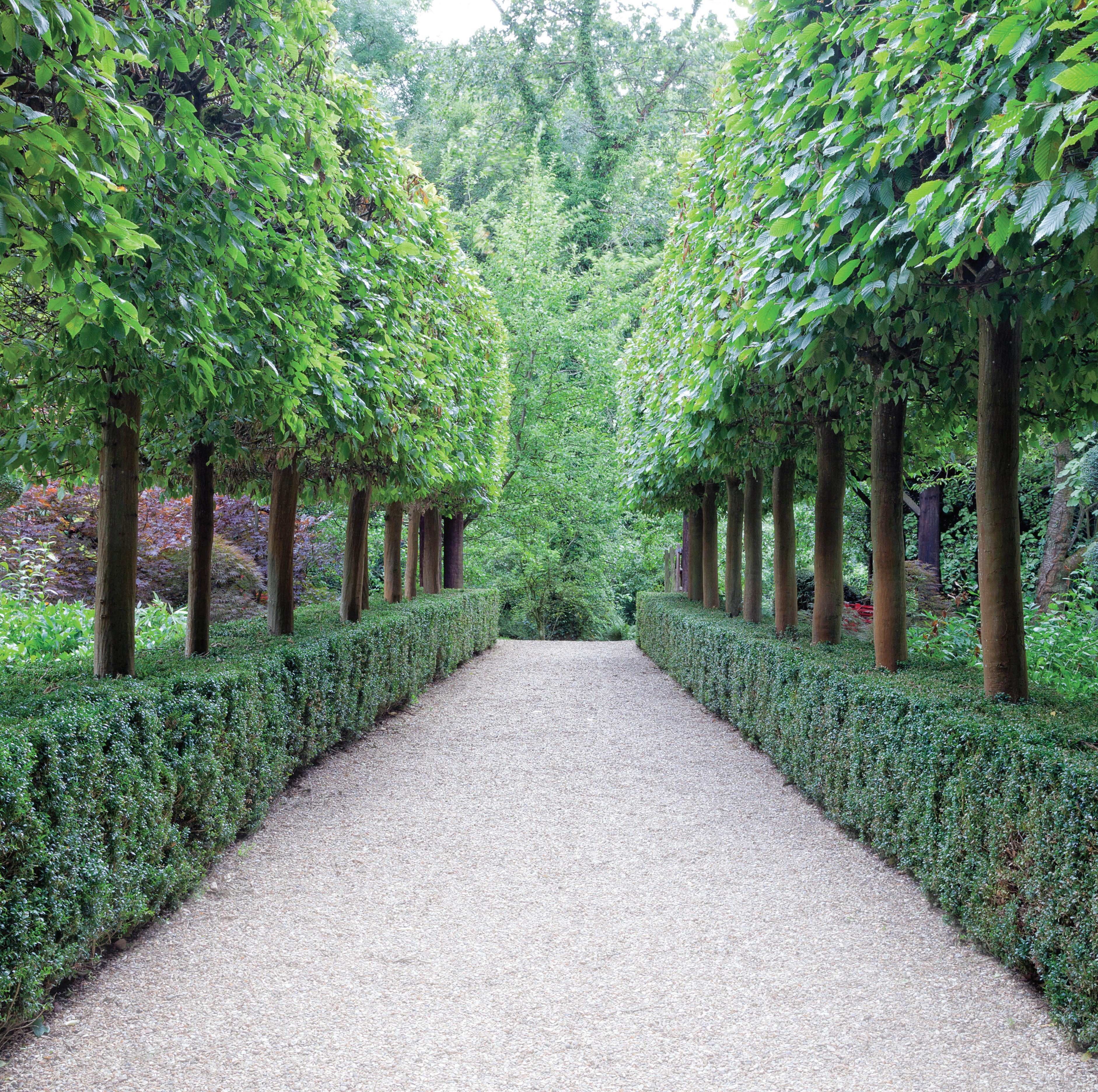 to the main entrance,” she says. “They don’t have to be boxwood—they can be hornbeam or linden trees–to lead the eye to a courtyard or fountain or formal garden in front.”