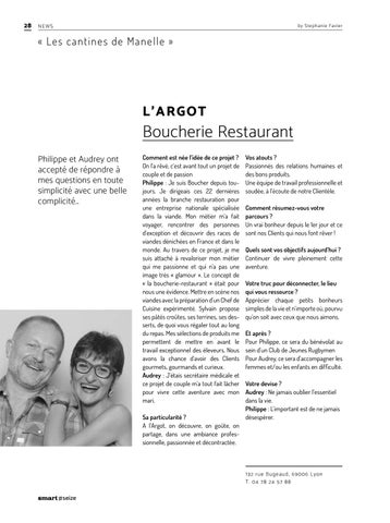 Comment est née l’idée de ce projet ? On l’a rêvé, c’est avant tout un projet de couple et de passion Philippe : Je suis Boucher depuis toujours. Je dirigeais ces 22 dernières années la branche restauration pour une entreprise nationale spécialisée dans la viande. Mon métier m’a fait voyager, rencontrer des personnes d’exception et découvrir des races de viandes dénichées en France et dans le monde. Au travers de ce projet, je me suis attaché à revaloriser mon métier qui me passionne et qui n’a pas une image très « glamour ». Le concept de « la boucherie-restaurant » était pour nous une évidence. Mettre en scène nos viandes avec la préparation d’un Chef de Cuisine expérimenté. Sylvain propose ses pâtés croûtes, ses terrines, ses desserts, de quoi vous régaler tout au long du repas. Mes sélections de produits me permettent de mettre en avant le travail exceptionnel des éleveurs. Nous avons la chance d’avoir des Clients gourmets, gourmands et curieux. Audrey : J’étais secrétaire médicale et ce projet de couple m’a tout fait lâcher pour vivre cette aventure avec mon mari. Sa particularité ? A l’Argot, on découvre, on goûte, on partage, dans une ambiance professionnelle, passionnée et décontractée.