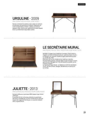 PAR PIERRE PAULIN 1953 / RÉÉDITION LIGNE ROSET 2015 Sensible à l’usage et aux matériaux nouveaux, Pierre Paulin a imaginé une face de l’abattant de son « petit secrétaire mural » en Resopal noir, premier stratifié d’origine allemande produit au monde dès 1930. Goût pour les formes simples et les matériaux naturels, fonctionnalité pratique, volumes légers et gain de place 62 ans après les Arts Ménagers de 1953, les besoins du public ont-ils vraiment changé ? La réponse de Ligne Roset : la réédition en 2015 du Secrétaire mural de Pierre Paulin, designer décidément en avance sur son temps.