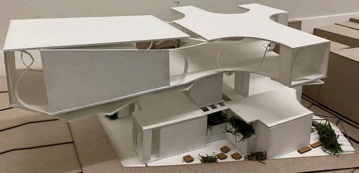 Media House is based in a site in Downtown Kent on the corner of S. Water Street and Main Street. In this sight, we had to create a Media House with assigned programs. The black box theater is the main feature of the design. With my structure, I wanted the space outside to be just as intriguing as the space inside. I wanted a continuous flow throughout the building so that the public was encouraged to wander their way through the building as a whole, experiencing all of the types of media it has to offer.