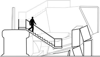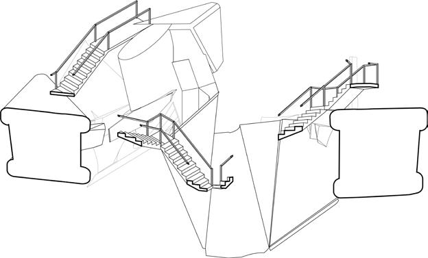This geometrical project focused on the experimentation of stairs in space. It presented a learning opportunity for the placement of stairs and how they are able to interact with the space around them. The geometry influenced the path the stairs took. We also experimented with different types of drawing representations of the stairs to explore how they created a guided path through the geometrical structure.