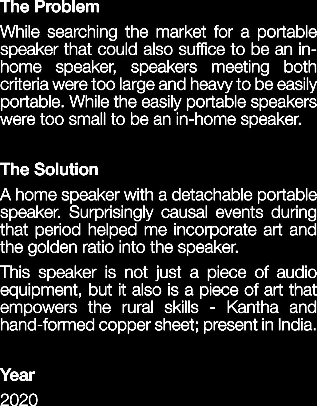 Ahomespeakerwithadetachableportable speaker.Surprisinglycausaleventsduring thatperiodhelpedmeincorporateartand thegoldenratiointothespeaker.