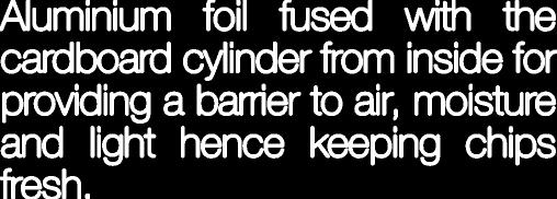 MohakParikhAluminiumfoilfusedwiththe cardboardcylinderfrominsidefor providingabarriertoair,moisture andlighthencekeepingchips fresh.