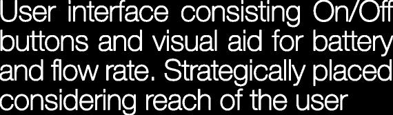 UserinterfaceconsistingOn/Of buttonsandvisualaidforbattery andfowrate.Strategicallyplaced consideringreachoftheuser