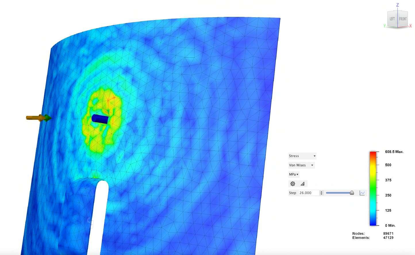 Simulationofaneventofa9mmbulletfredattheshield.Theresultsshowthatthe 9mmbulletatfullspeedmaymakeaminutepuncturebutwillgetstuckandwont passtrough.