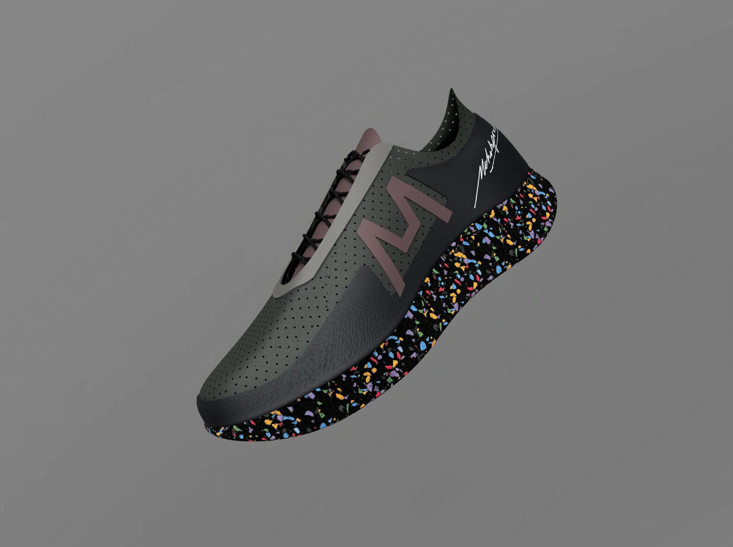 Sideelevationrenderingofshoewithfuoritelattice sole