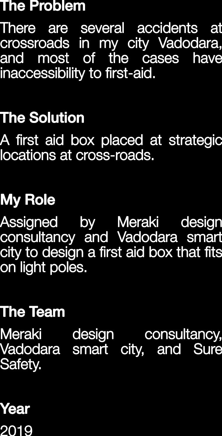 Thereareseveralaccidentsat crossroadsinmycityVadodara, andmostofthecaseshave inaccessibilitytofrst-aid.