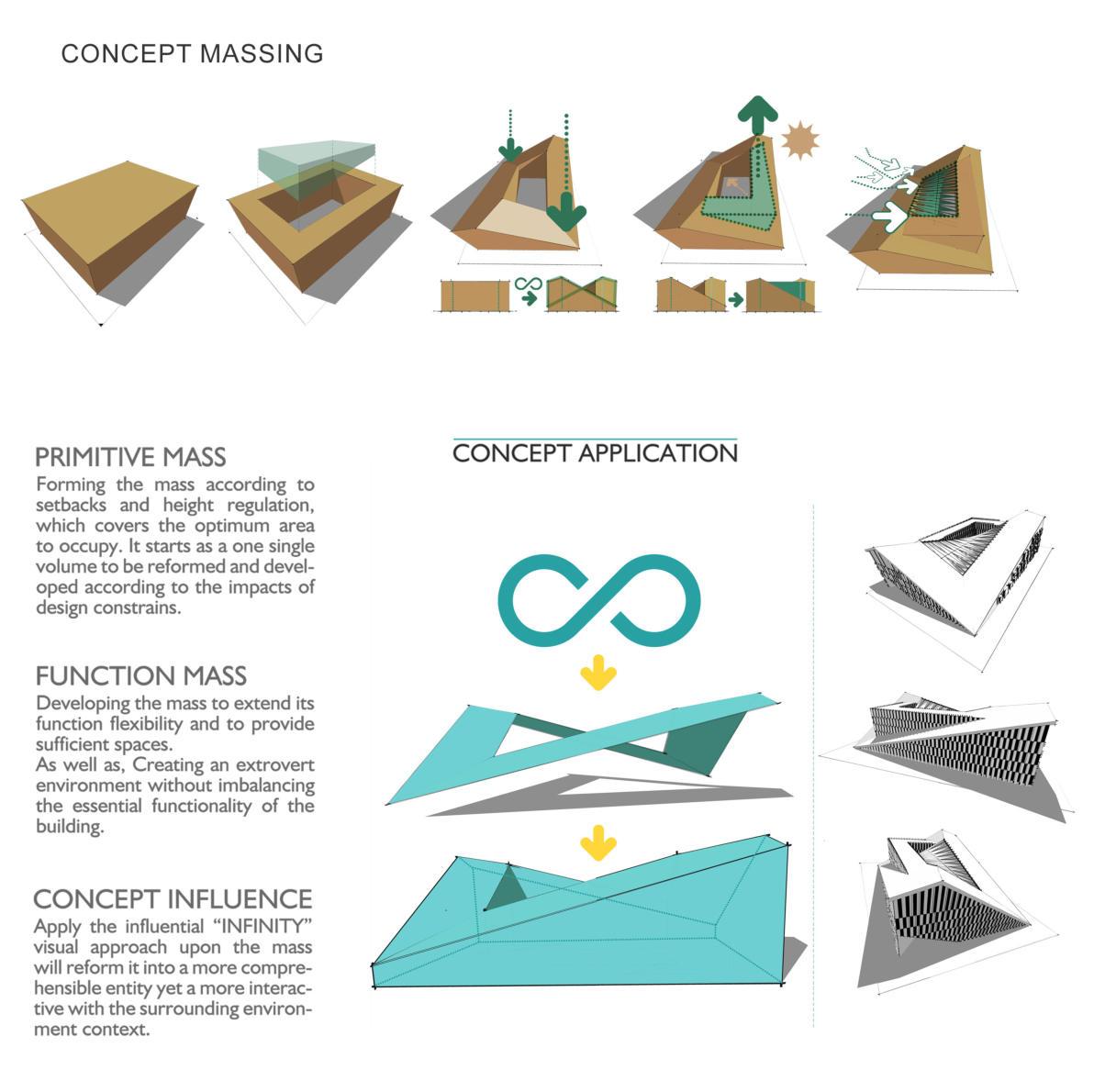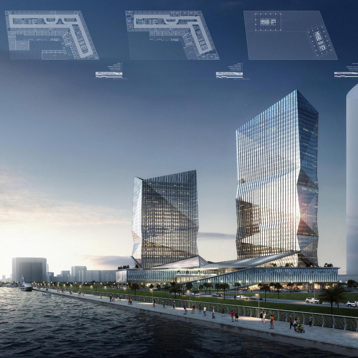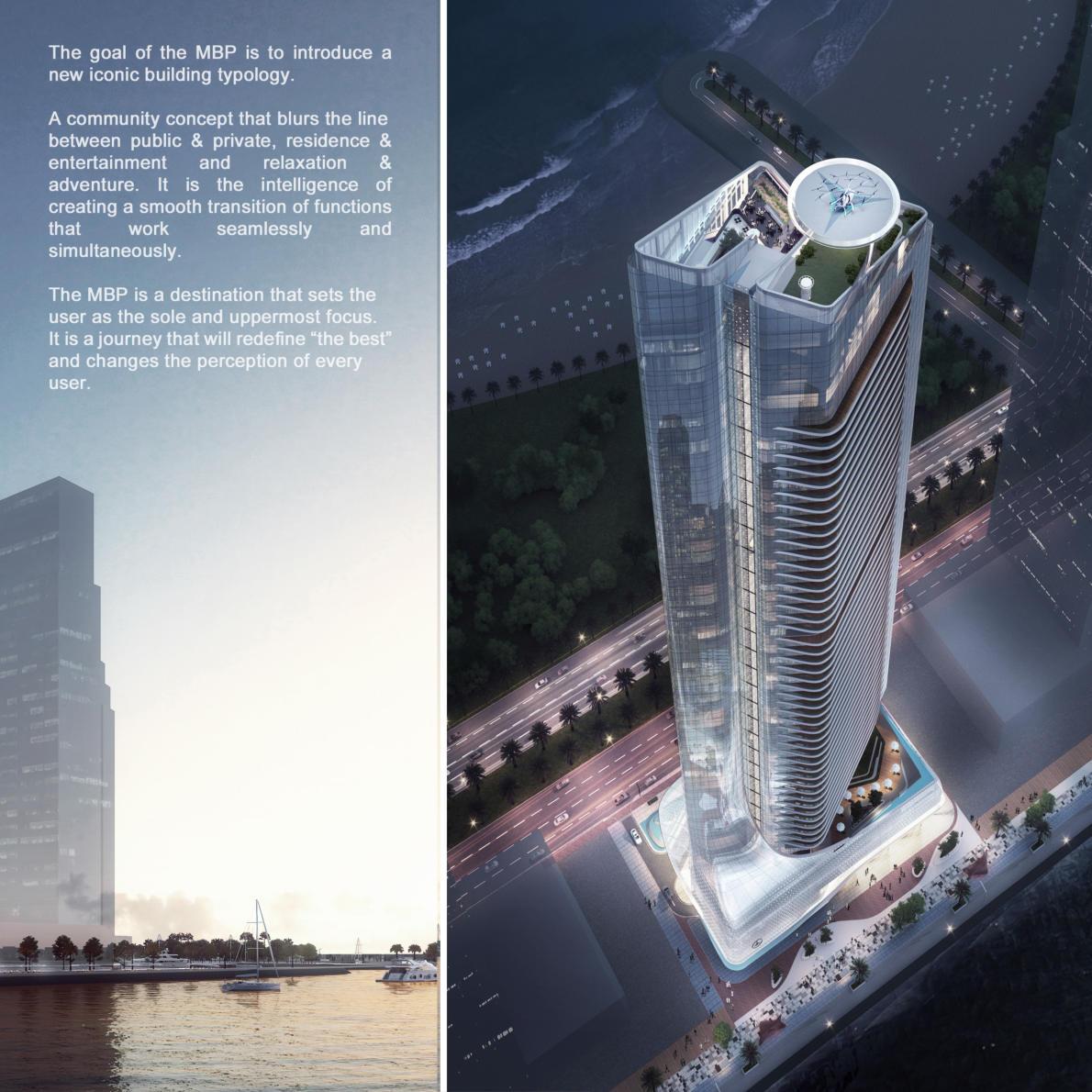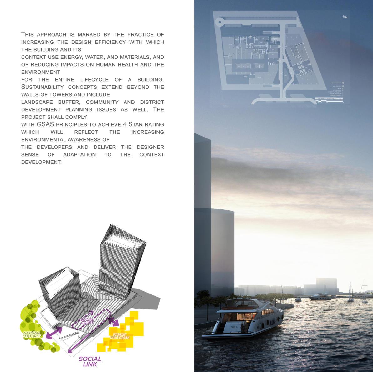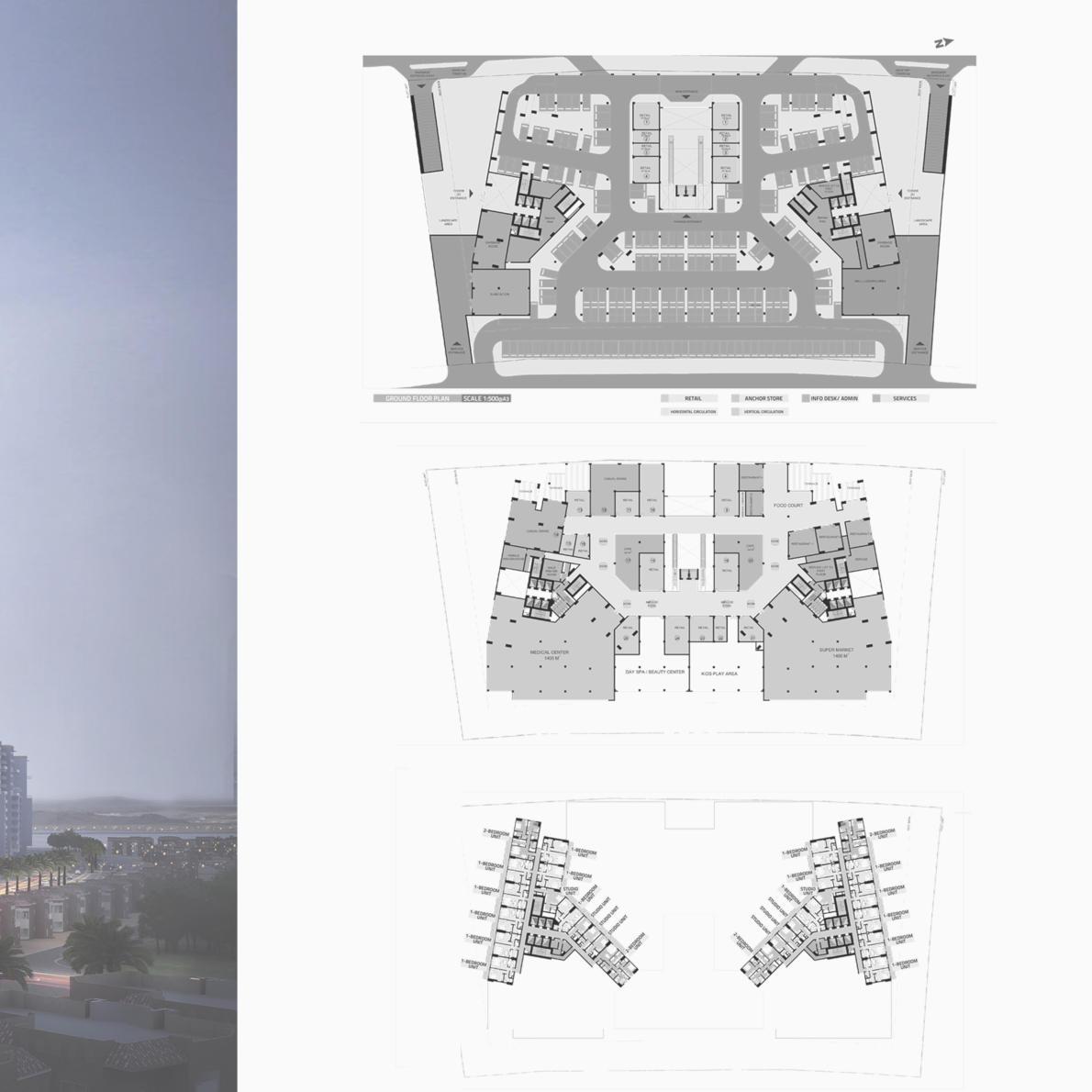 The splits in the floor layouts maximised the open water views across all the units with different hirarchies that creates a a dynamic evolving masses from the tower plinth towards the crown.