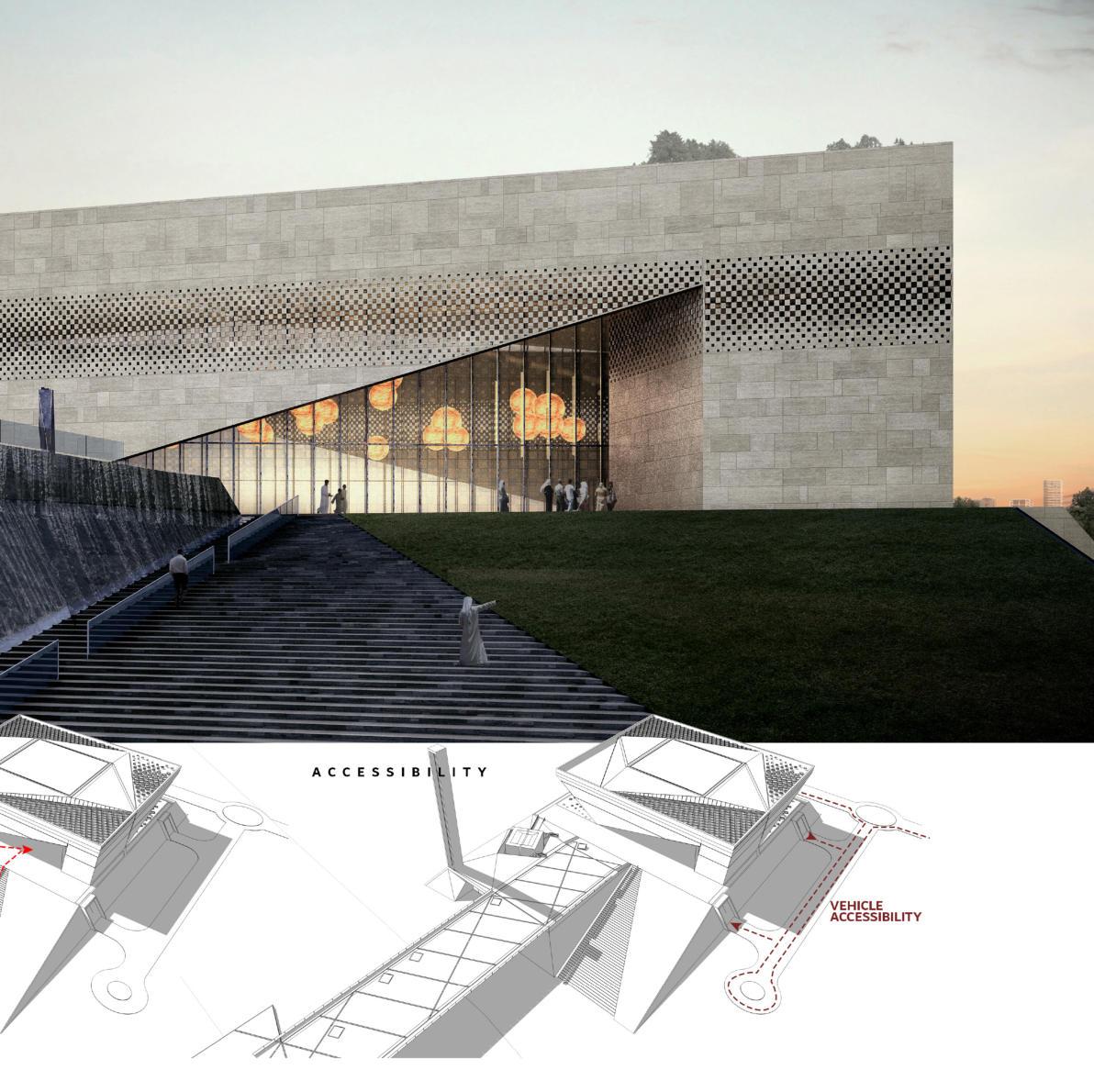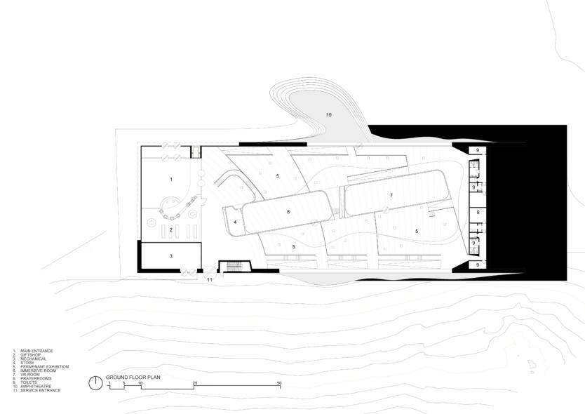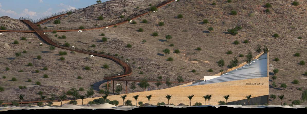 The main idea is to create a form that blends naturally with the context giving more space and significancy to the rock art site as it is the main attraction.