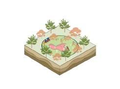 This project aims to engage people with nature through the microcosm experience created around the existing golf pond, such as seasonal wetland, riparian forests and freshwater marsh.