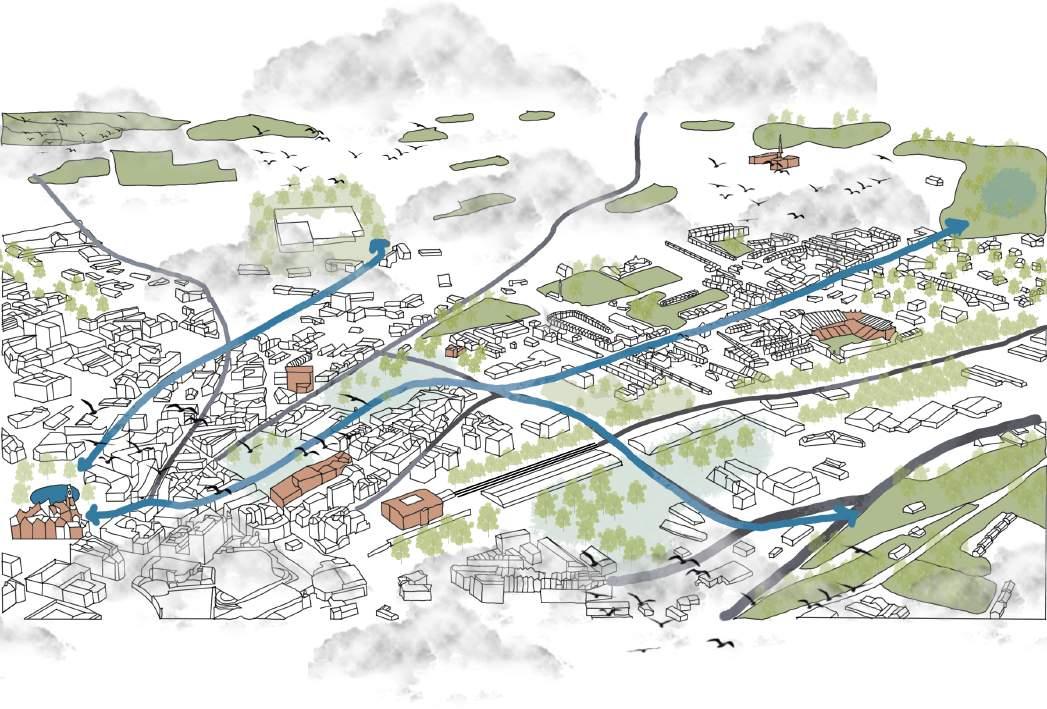 The journey will be unique a sensory experience, from the Victorian architecture to Maningham that has Bradford stadium, train station and all the shops, it is a gateway to new cultures and different societies, merging and exposing this will bring communities together and enhance social interaction. A perfect harmony between the heritage and nature will be present and balanced, the place will give the opportunity to engage but at the same time to run, hide and play, the journey continue until it reaches the rural landscapes, so it document a set of landscapes, events and activities and indeed memories, time with activities creates history and history create a sense of belonging which many people lack it. Green blue infrastructure will be created using nature based solutions to slow down water runoff, native species will be planted to support wildlife movement, the new parks will well balance social and environmental needs while contributing to the city economy, residential units takes a space in the proposed design.