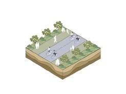A6181 road will be reduced in lanes to free space for pedestrian, cycle and suds implementation to reduce water runoff toward the beck corridor, this will connect it with the beck and will result in expanding the wildlife corridor. This drawing shows the 3D proposed main routes to major parks from the city center to enhance the connectivity.