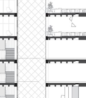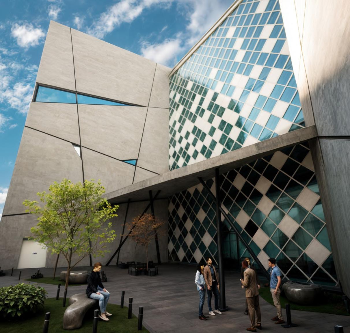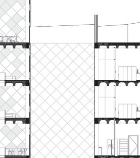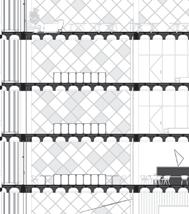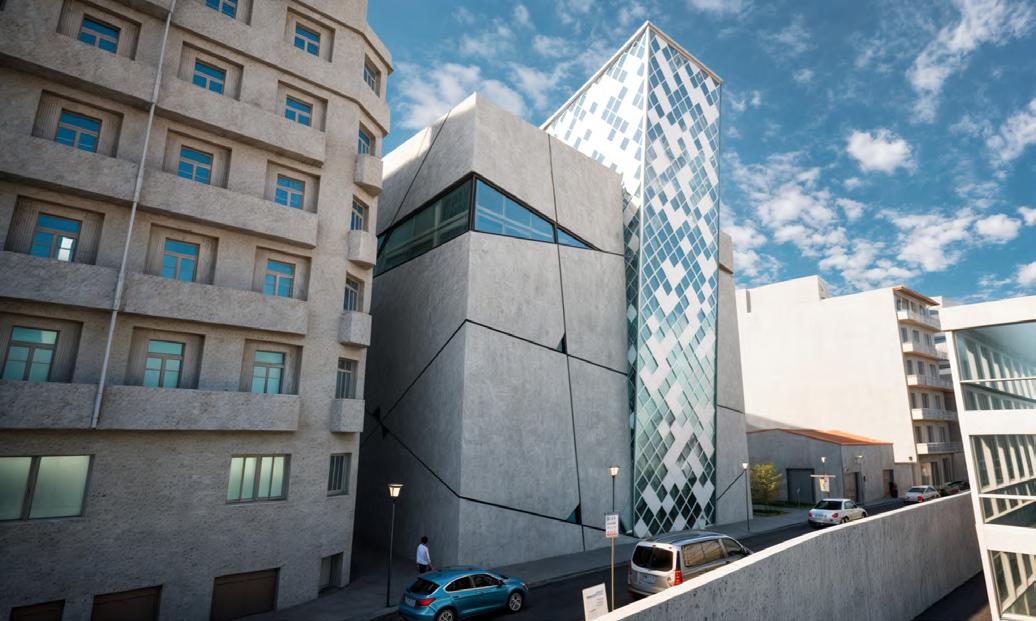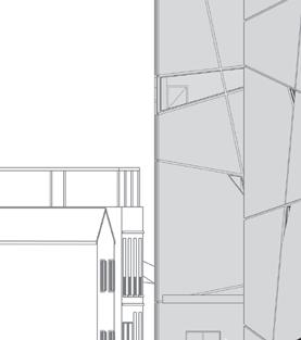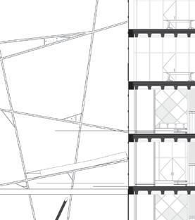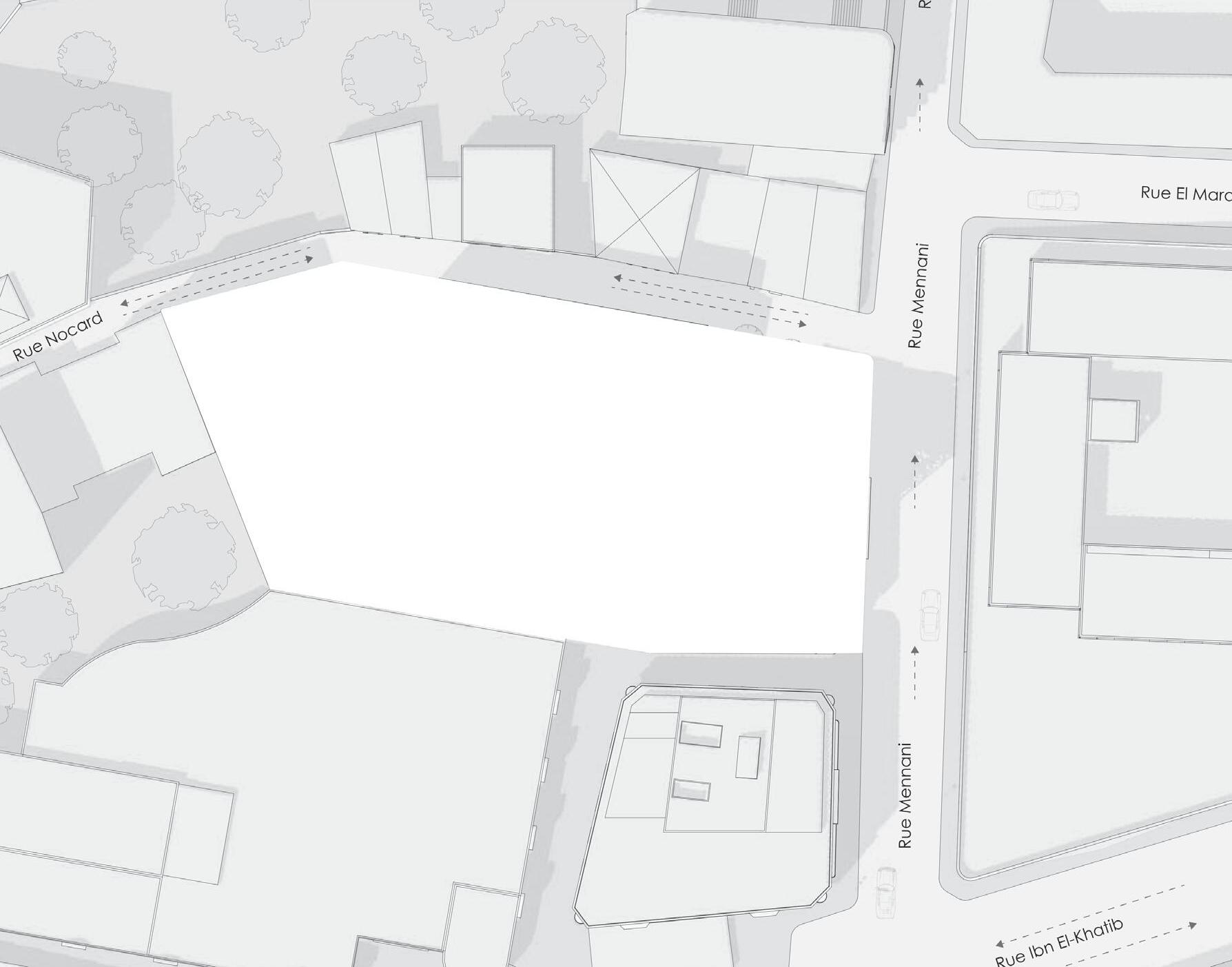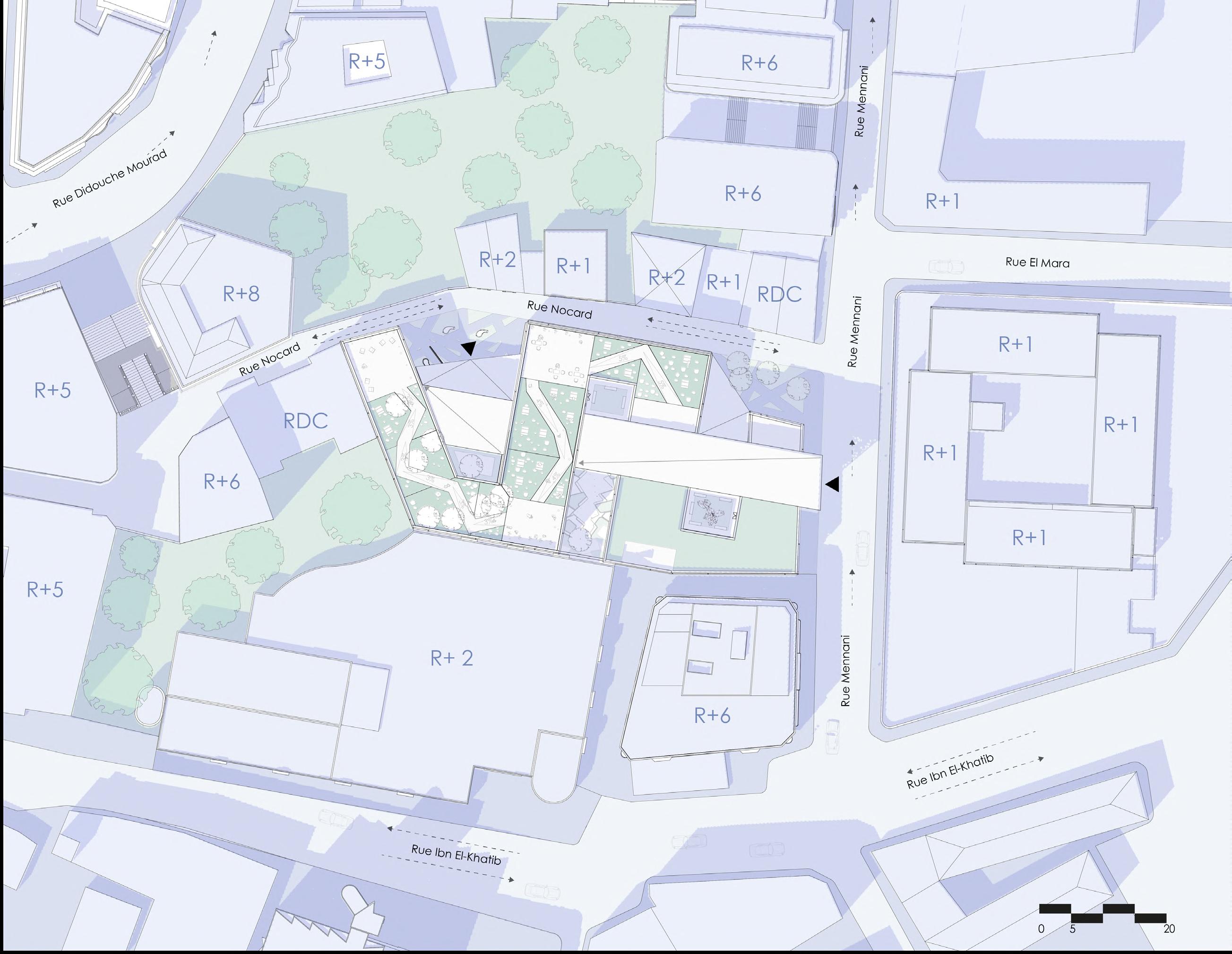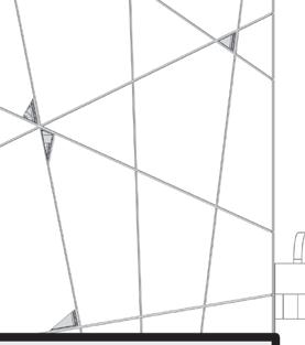 Pour élaborer cette conception, nous avons entrepris une analyse minutieuse des dimensions et des proportions des édifices environnants. À travers cette lecture attentive, nous avons élaboré une trame, utilisant ces dimensions comme point de départ. Sur cette trame, chaque facette a été soigneusement étudiée, à l’aide de lignes tracées depuis les points de fuite sur les quatre côtés. L’intersection de ces lignes a donné naissance à des ouvertures triangulaires, façonnées selon les besoins d’éclairage des espaces intérieurs.