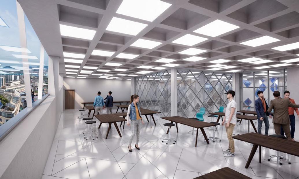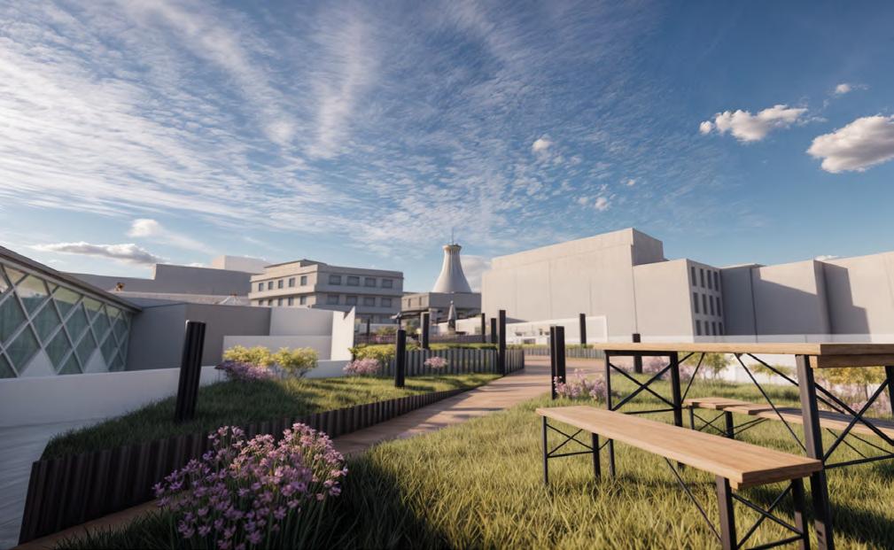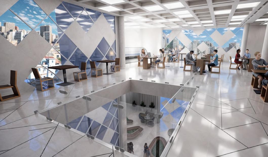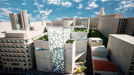Fig 53: Image de synthèse qui montre le volume de verre sur la façade Nord