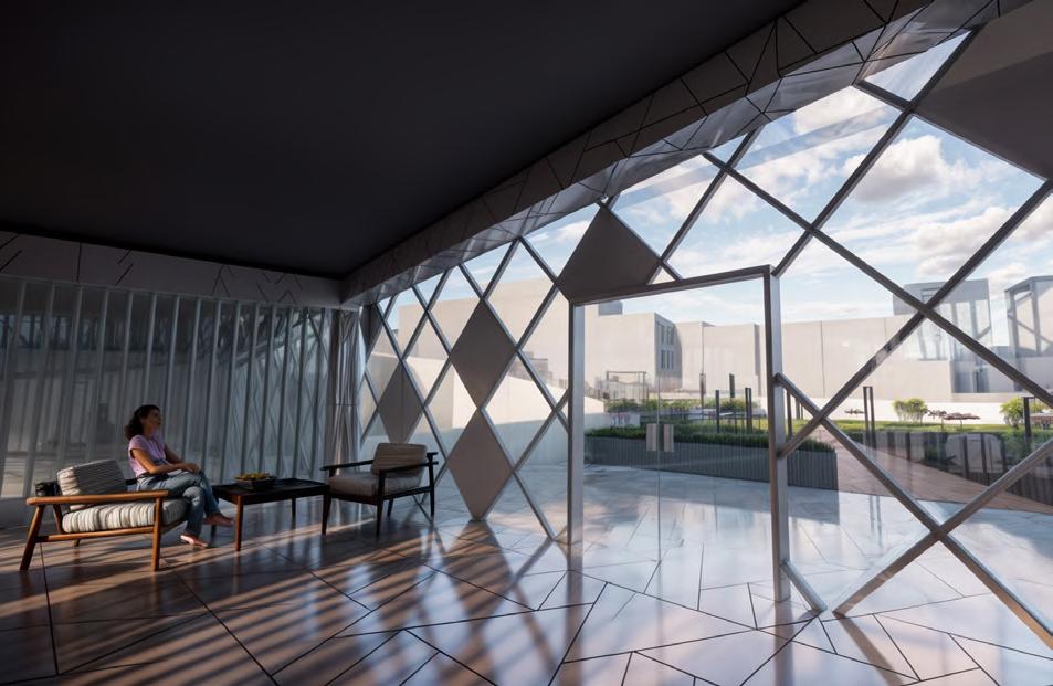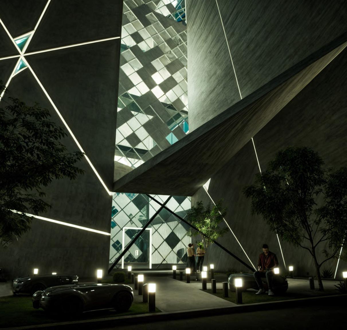 Dans la conception de l’enveloppe, nous avons opté pour une décision stratégique d’adopter une dualité entre l’opposition et la transparence, ayant pour objectif de souligner le jeu volumétrique de manière saisissante. Cette approche se matérialise par l’utilisation métaphorique des pierres précieuses.