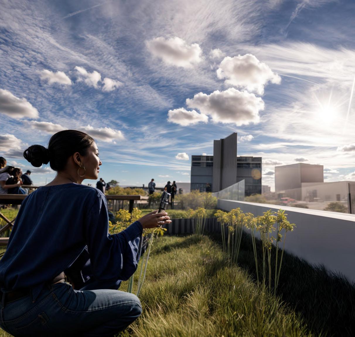 La terrasse végétalisée et les panneaux Photovoltaïque: