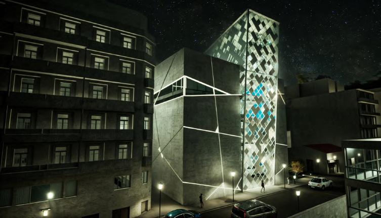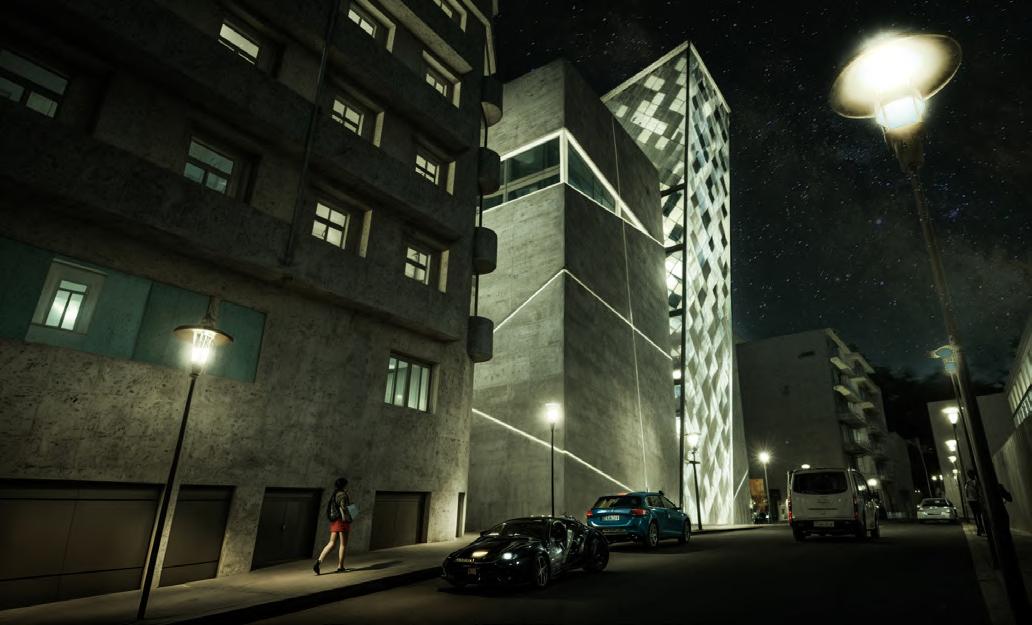 Fig 62: Image de synthèse qui montre une ambiance nuit du projet