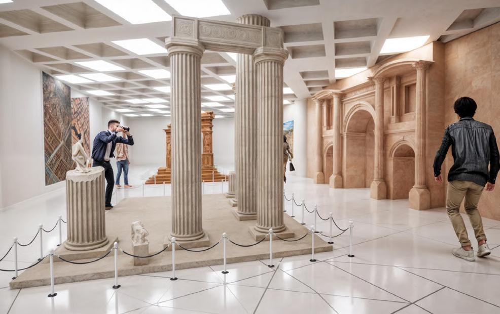 En ce qui concerne l’exposition permanente, son agencement vise à offrir une expérience immersive et pédagogique aux visiteurs. Structurée en rubriques organisées chronologiquement, elle trace un parcours à travers l’histoire, mettant en lumière les différentes époques et styles architecturaux. Nous avons soigneusement conçu des aménagements qui évoquent ces périodes historiques, utilisant des décors et des installations qui imitent ces styles architecturaux.