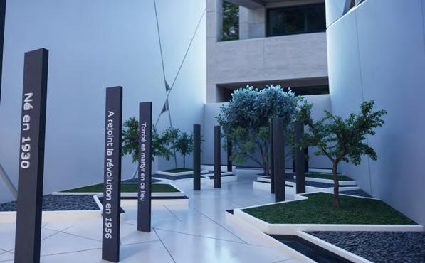 Face à cette désolation, nous avons pris la décision de préserver le figuier tout en redonnant vie au site à travers une installation artistique innovante. Cette installation se constitue de blocs de béton disposés de manière linéaire, chacun portant des inscriptions et des informations sur le martyr. Les blocs, alignés de façon à obstruer partiellement la vue vers le patio, incitent le visiteur à s’approcher par curiosité et à avancer pour en savoir davantage. En explorant les inscriptions sur les blocs.