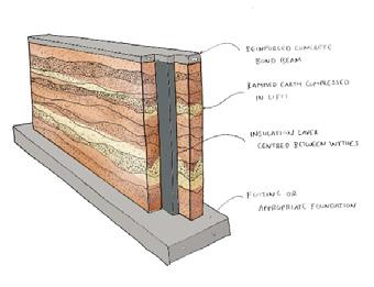 Rammed earth construction is the process of ramming a mixture of aggregates, like gravel, sand, silt and clay into a formwork to create walls. When the earth is dry the formwork is removed to reveal solid monolithic walls. Rammed earth has many advantages; it is en vironmentally friendly, it is also strong, durable, ex tremely low maintenance, fire proof , reduces noise and it is non-toxic, non-polluting and breathes which creates healthy spaces for users