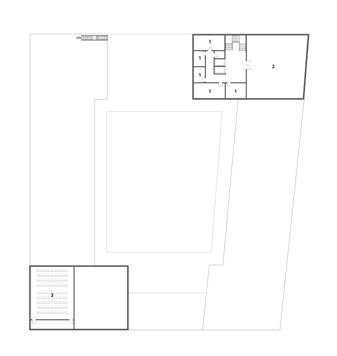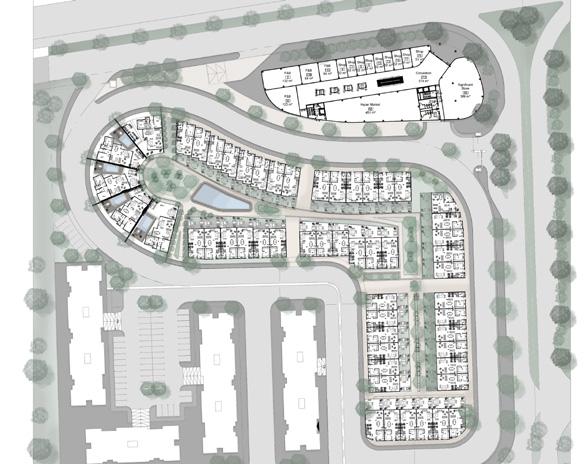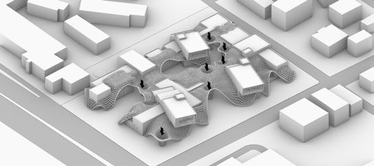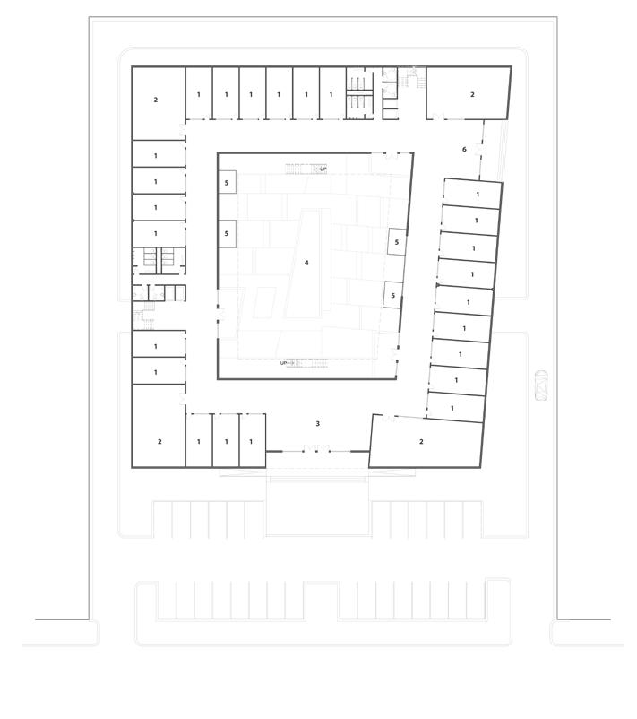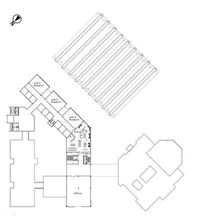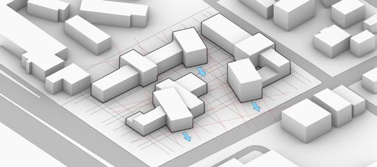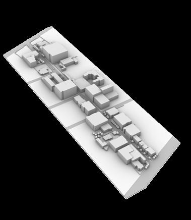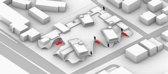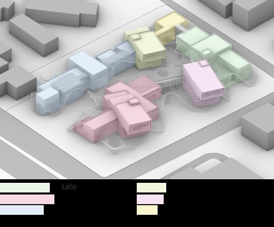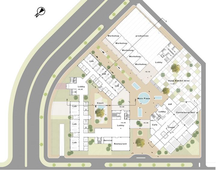 2. Labs oriented to the back street, two main axes are cre ated and meet at the central plaza.