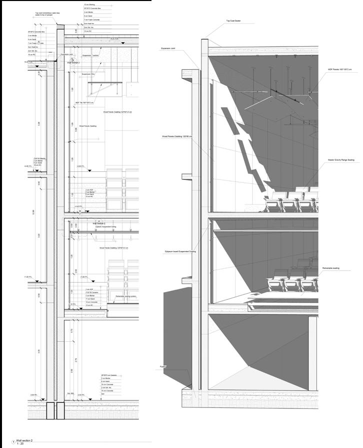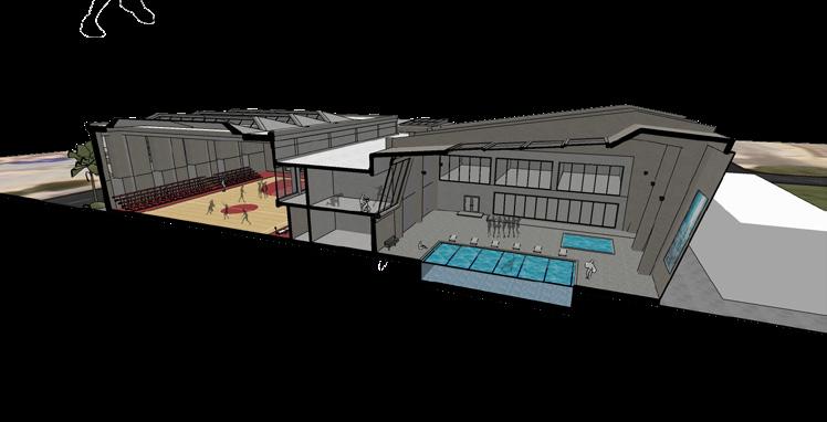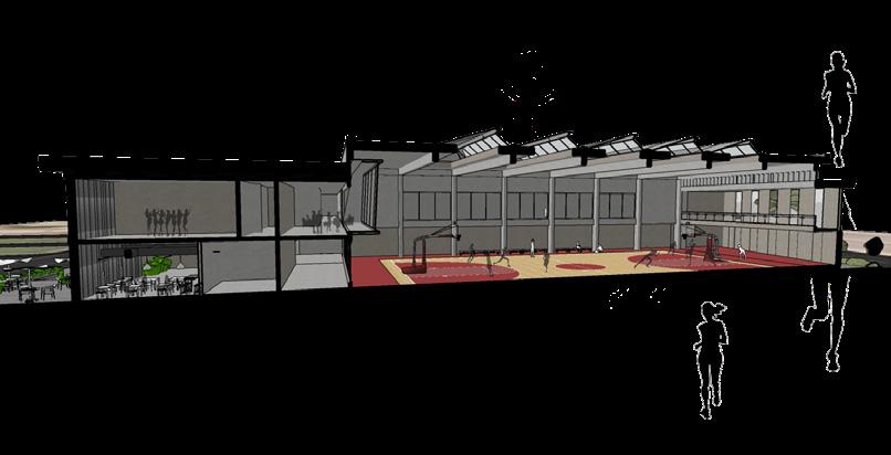 2. Connecting the three masses with a shading element adding unity and creating different layers and different types of spaces