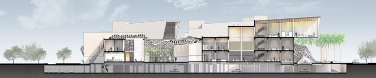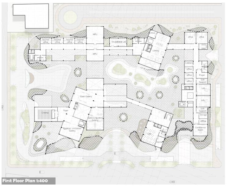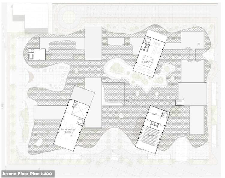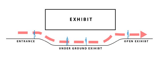 4. Flying library at the focal point of the project, and under ground exhibit is created to connect the entrance to the open exhibit area.