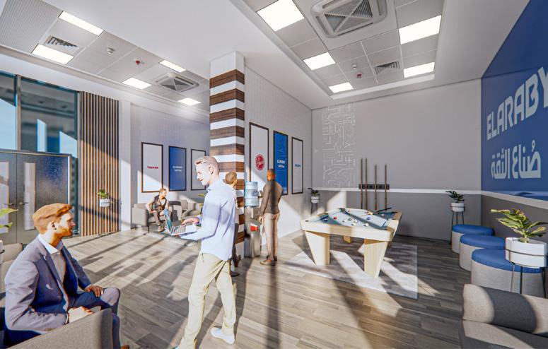 The project is to develop the design and create the tender documents for an office building in Benha owned by El-Araby Group. Interior design of the important spaces in the building such as the Entrance lobby, Entertainment hall and meeting rooms as well as modeling and rendering the interiors ENTRANCE LOBBY