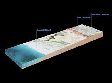 The project is located in the North Coast of Egypt, in El Alamien. This area is known for its wonderful beaches and clear sea water. The site is located on the Alex-Matrouh Road, A kilo-meter away from the sea shore. The is not inclined towards the sea.