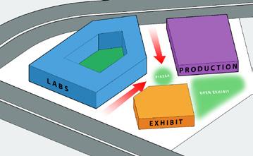 3.Subtract from the Labs mass to connect, Labs’ court to the central plaza to the open exhibit area.