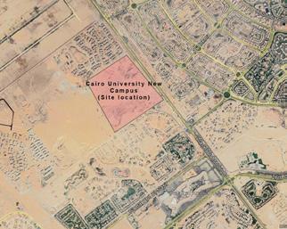 The site location is on the new campus of Cairo Uni versity, the campus is on Waslet Dahsour Road, in 6th October city, the location is near Mall of Arabia and Nile University.