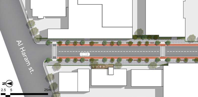 Street length: 500 m Street width: 13 m The street connects Al-Harm st. to Khatam Al-Mursalin st. and it has 3 intersections with an other 3 streets which are: Hassan El-Qady, Has san Mohamed st. and Nasir st.