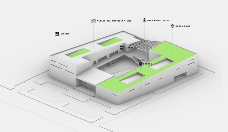 The aim is to create an unconventional shopping center, that respects and make use of its Environment to create great user experience, so it can be an attrac tion and an Entertainment hub in North Coast, Sidi Abdel-ElRahman, ElAlamien.
