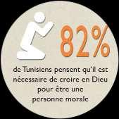 En contrepartie, 82% de la population tunisienne pensent qu’il faut être une personne religieuse pour être une personne morale (Les Tunisiens, moins libéraux qu’il n’y paraît ?, 2013) (sondage mené par le site Nawaat3)