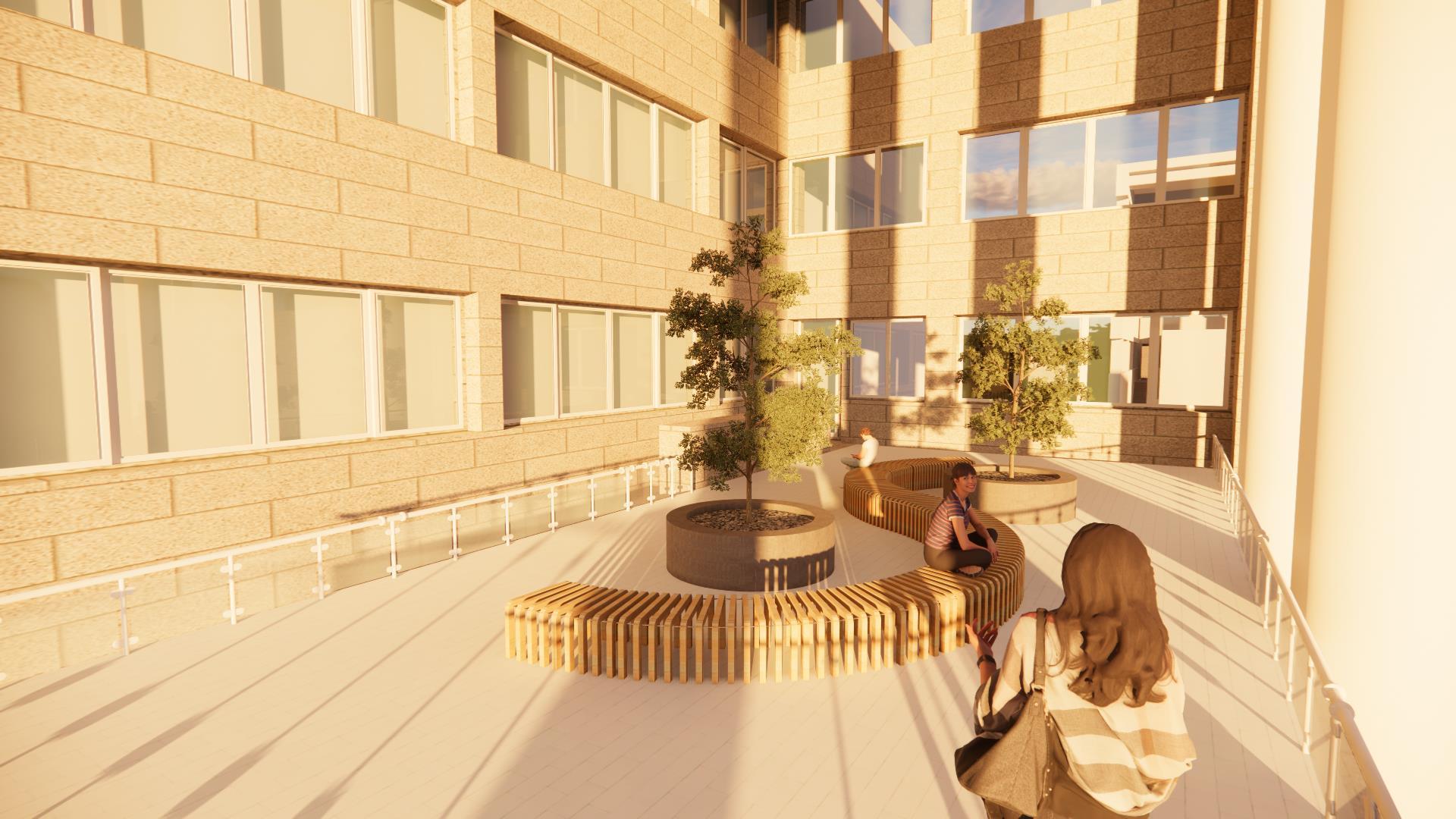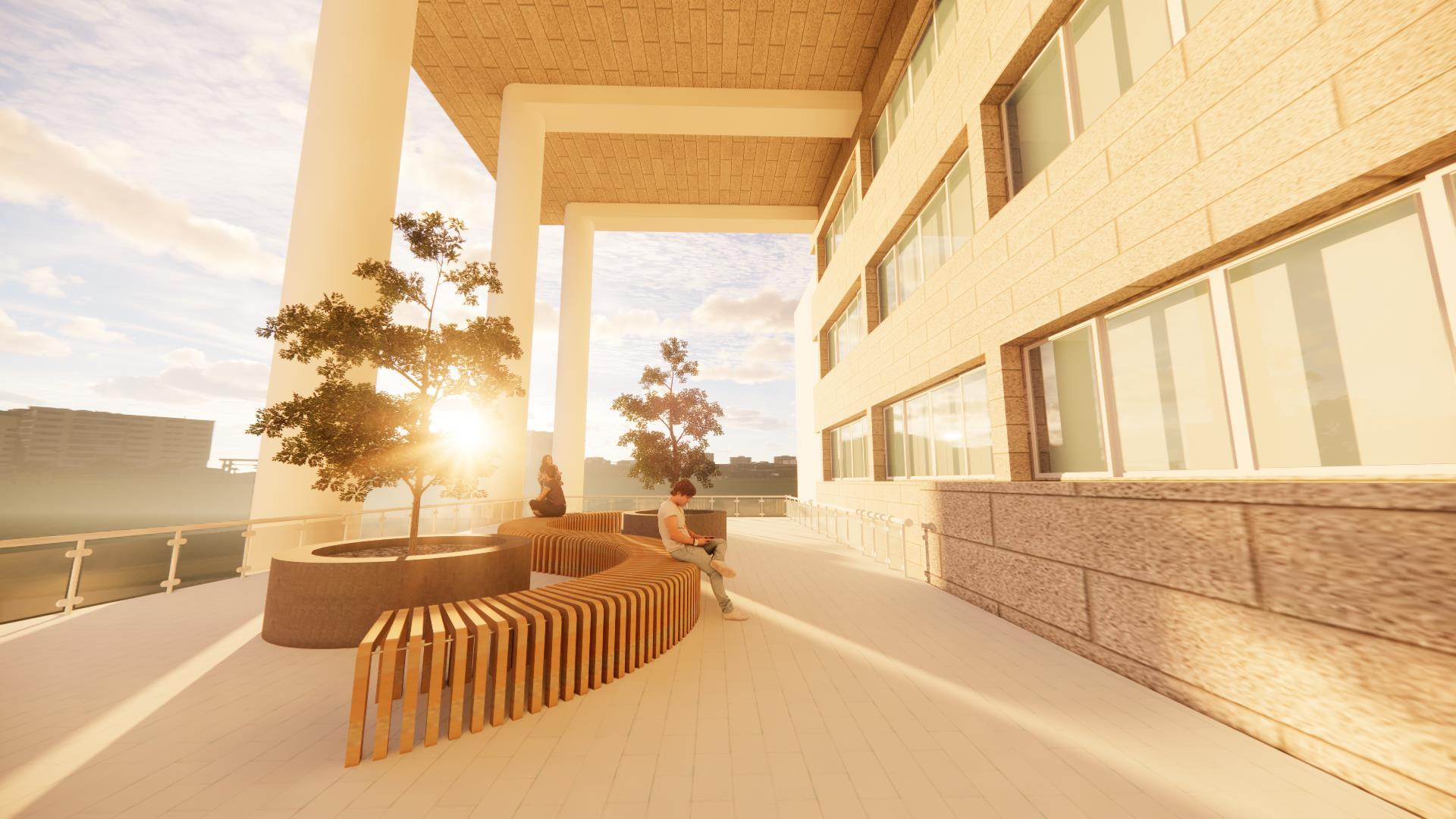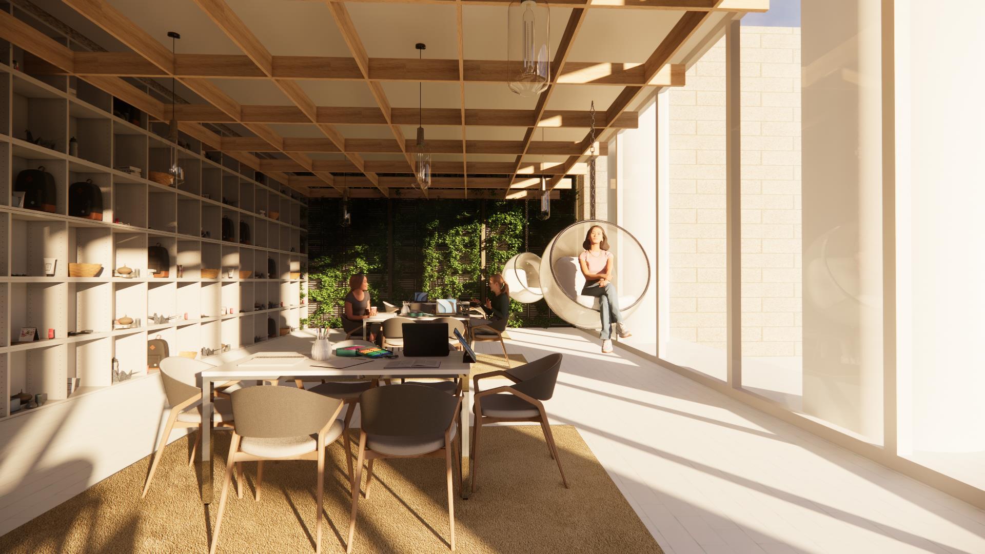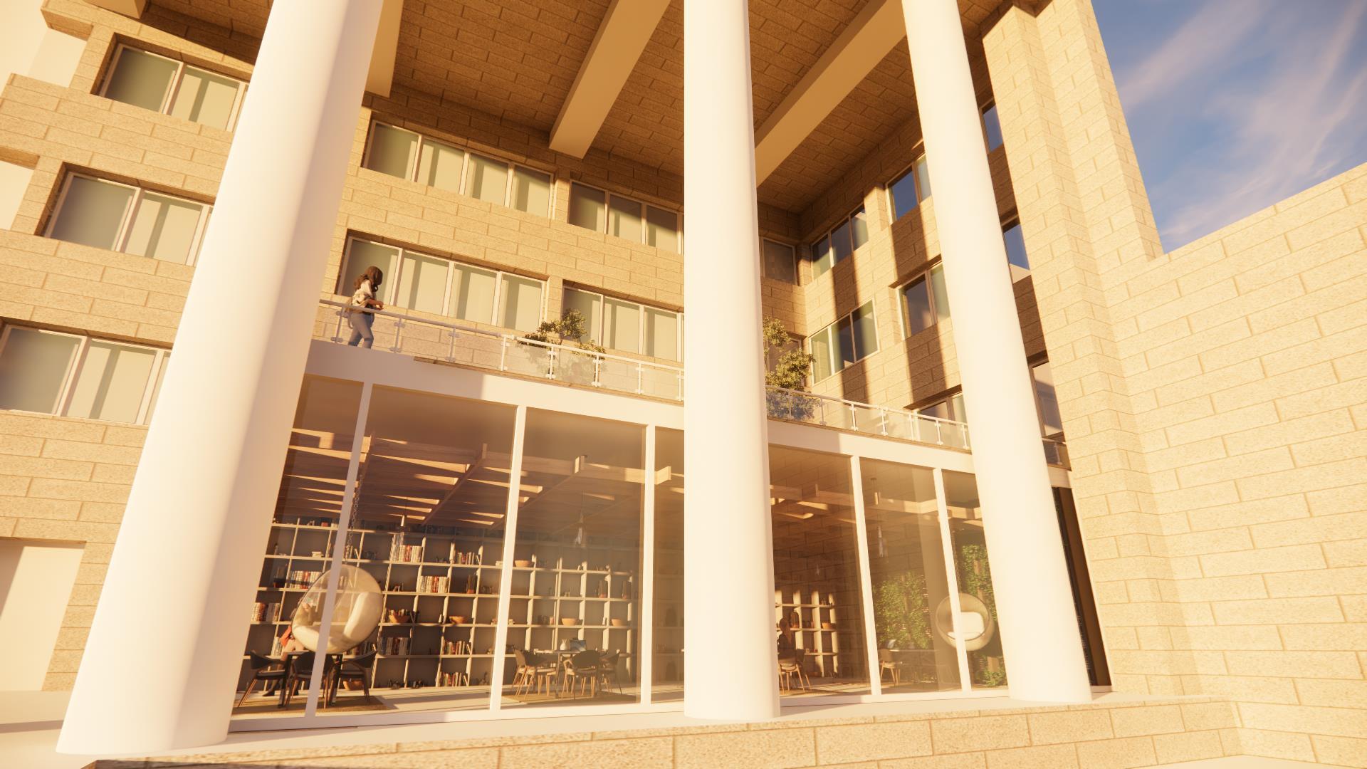 The proposed renovation aims to transform the existing outdoor court into a modern, functional, and aesthetically pleasing indoor space that will enhance the academic experience of students and promote their creativity and productivity.. The renovated indoor studying area will consist of two floors, each designed to cater to specific needs and activities. The ground floor will serve as a social space for students, where they can gather, relax, and interact with each other. The space will be designed with comfortable seating areas, natural lighting, and vibrant colors to create a welcoming and inviting atmosphere.