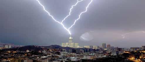 floor as heavy rains thrashed and carried objects around. As the rare scenes were unfolding at the giant black cube towards which all Muslims pray, another video showed a bolt of lightning striking the iconic Fairmont Makkah Clock Royal Tower hotel, illuminating the night sky on Tuesday. Hussain al-Qahtani, spokesman for the National Center
