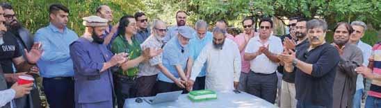 cars, which were decorated with flags and slogans which descended from Holland park and drove to the residence of Khan located near Surrey Jameh Masjid on 72 ave. A cakecutting ceremony was held, in which MP Sukh Dhaliwal