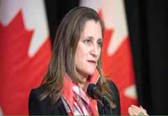 Freeland was caught driving 132 km/ hr between the towns of Grande Prairie and Peace River and has paid the