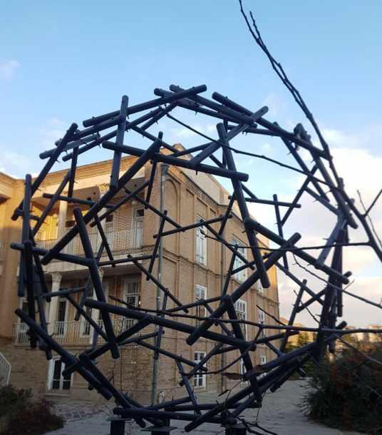Using inscription above the entrance door or arches in Iranian architecture had been very popular. We tried to use this element in our gate but in a modern form. We thought about pixel inscription. The principle design of our gate is an Iranian architecture type called Chahartaghi, which means a building with 4 arches. We lathed 4 arches in a cube and eliminated the ceiling to create a space for students to communicate and rest. Inspired from Iranian traditional architecture, it was a magnificent way to design the wall-ceilings.