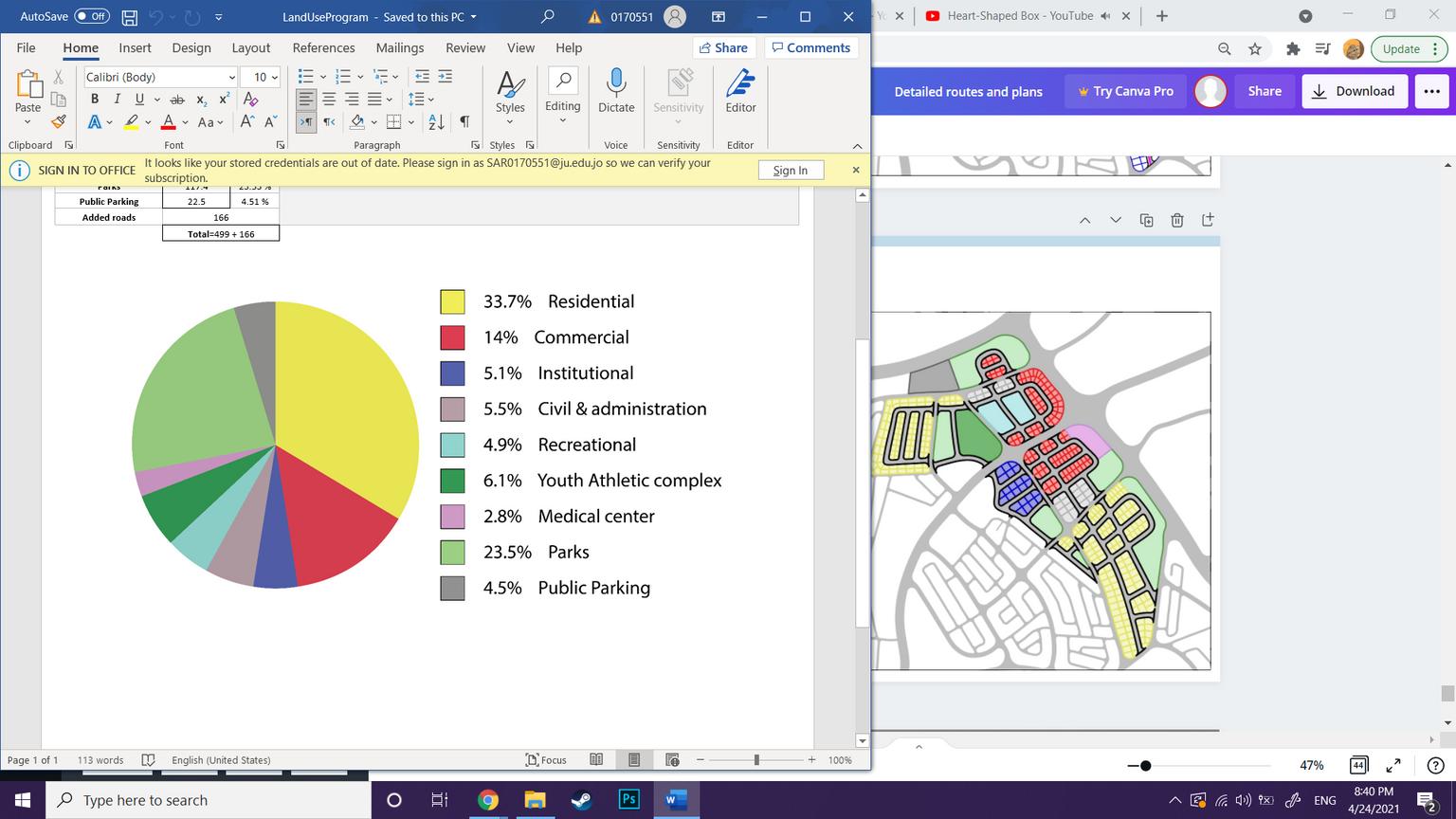 MASTERPLAN-LANDUSE RESIDENTIAL 33.7% COMMERCIAL 14% CIVIL&ADMINISTRATION 55% INSTITUTIONAL 5 1% RECREATIONAL 4 9% YOUTHATHLETICCOMPLEX 61% MEDICALCENTER 2 8% PARKS 23 5% PUBLICPARKING 4 5% INDUSTRIALS MASTERPLAN 60