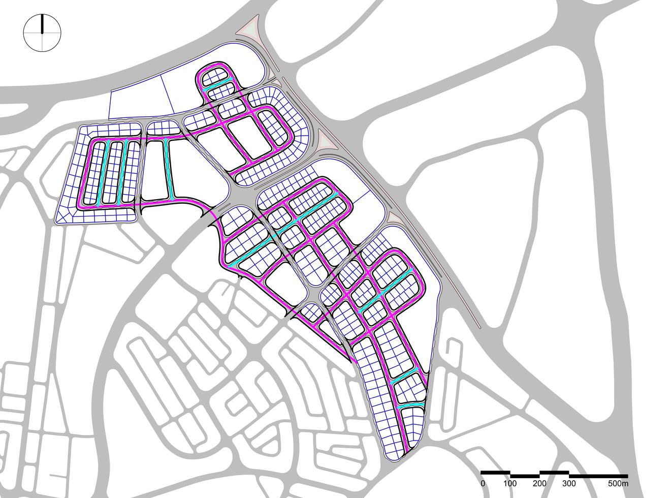 300X300mgridtocreatesuperblocks hasbeenissuedtoconnectthe streetstogetherandinsertnodesin theintersectionsforbetter transportationsystems,traffic organizationandlanduse orientation 80 100metersfortraffic control 60 80incentralareas withlargenumberof pedestrian Spacemanagement forCPTEDhence superblockgrid methodisusedas wellastomakethe designformal.