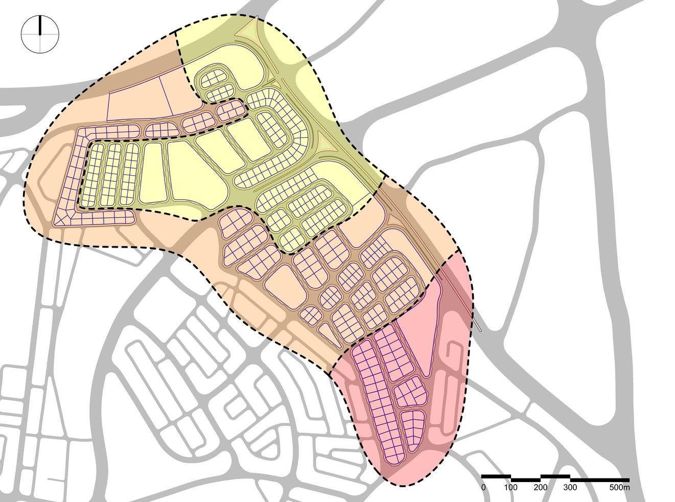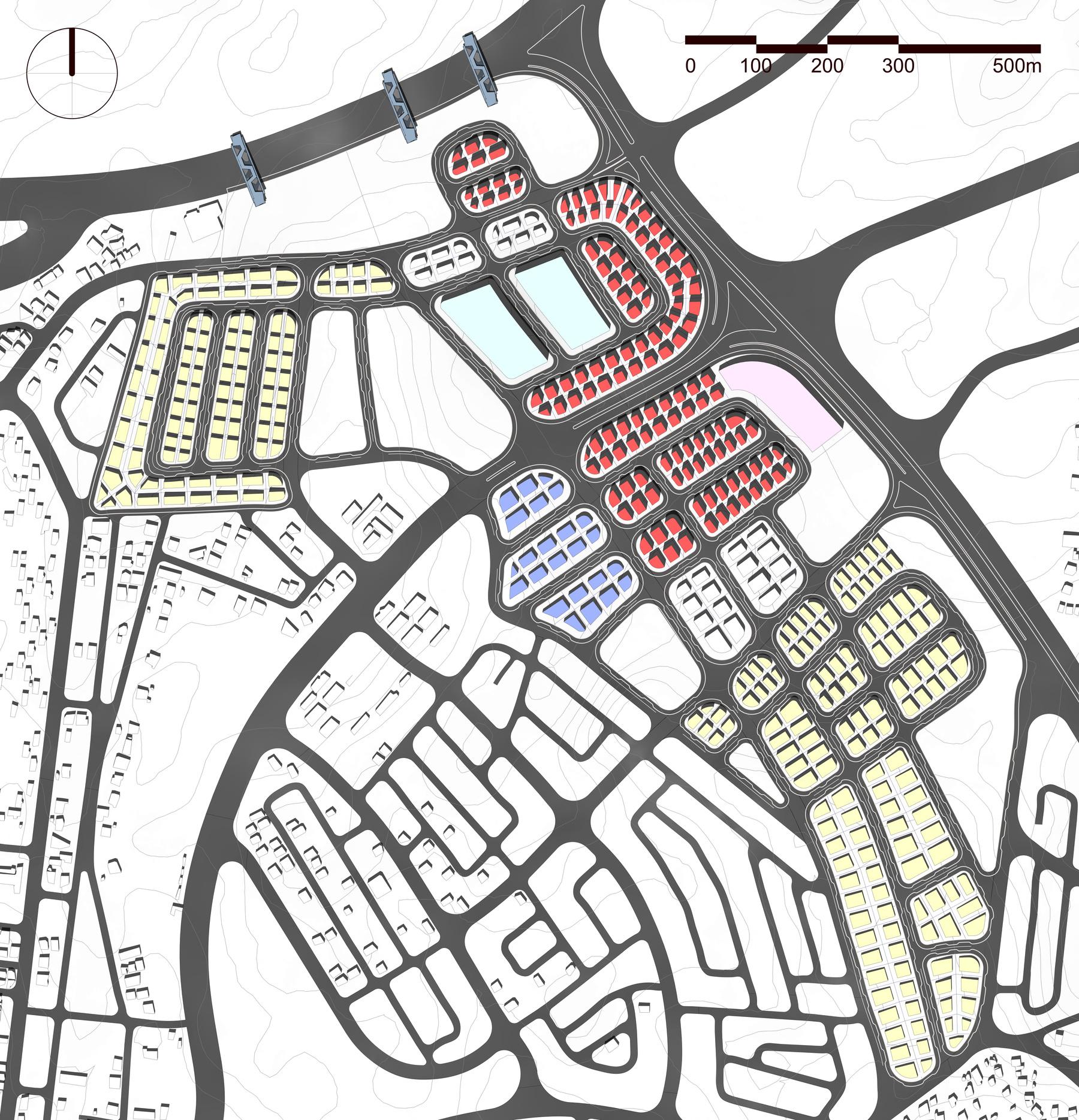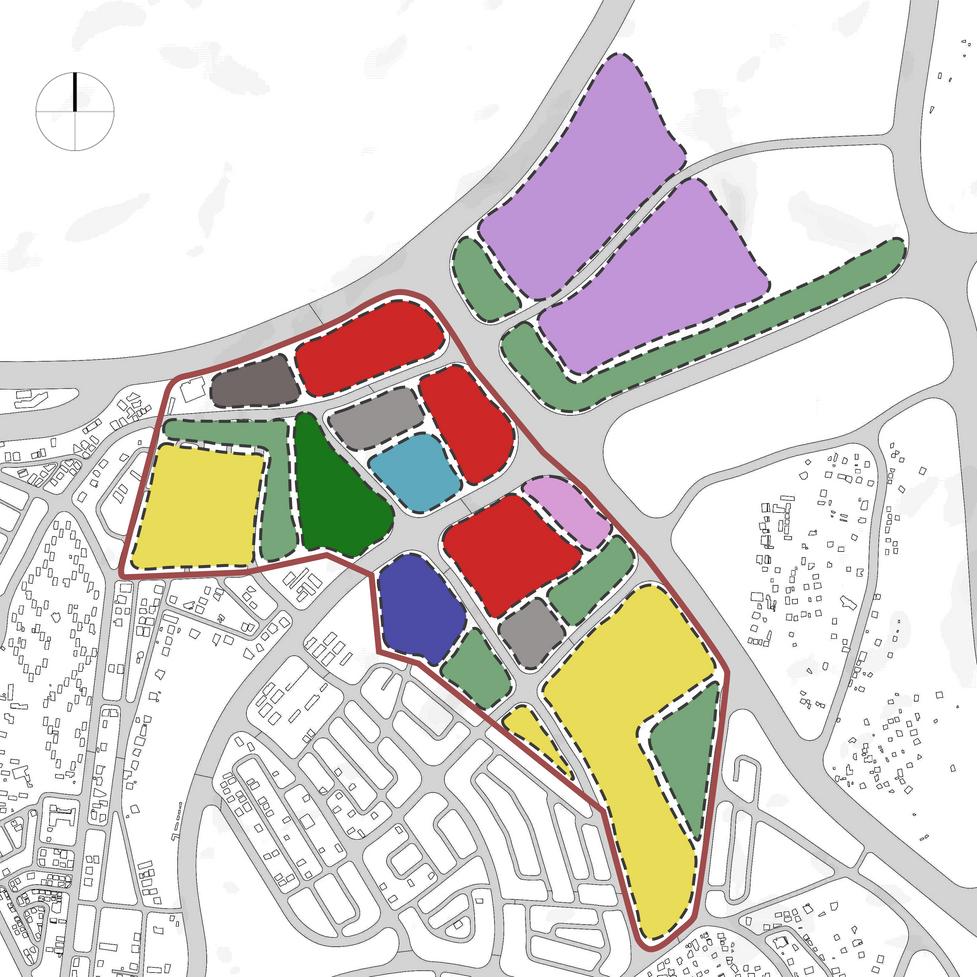 RESIDENTIAL PARKS INSTITUTIONAL CIVILUNIT OPENPARKINGLOT MEDICALCENTER Industrialsectorhasbeenmovedtotheothersideofthe streetwithaddedbufferzones greenbelts forvisual andenvironmentalprotectionwhereastheother functionsaredisplayedaccordinglytotheroadhierarchy andprivacymeasurements