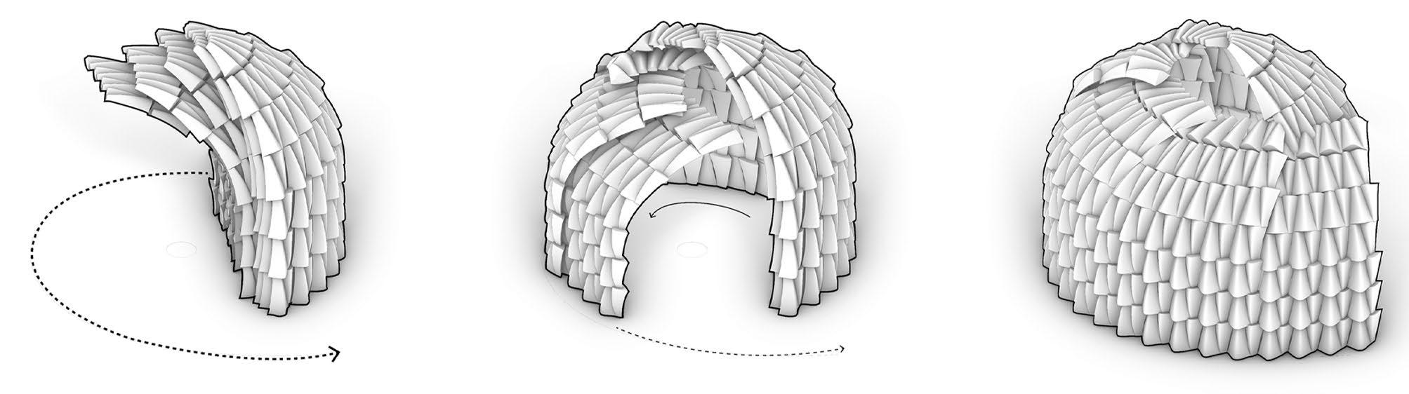 The unit in the folded position. The spiral folding mechanism. The unit final form.
