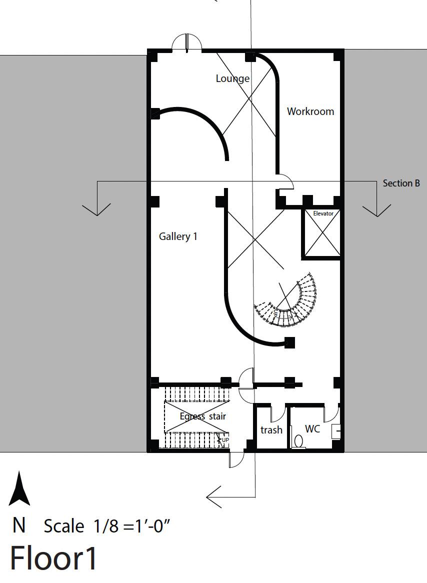 The primary goal of this project is to build a vertical ART GALLERY in Washington, DC. It was necessary to find visual and physical spatial links between different layers of space. The artwork will mostly consist of high-quality works ranging from 2D art to modest sculptural work.