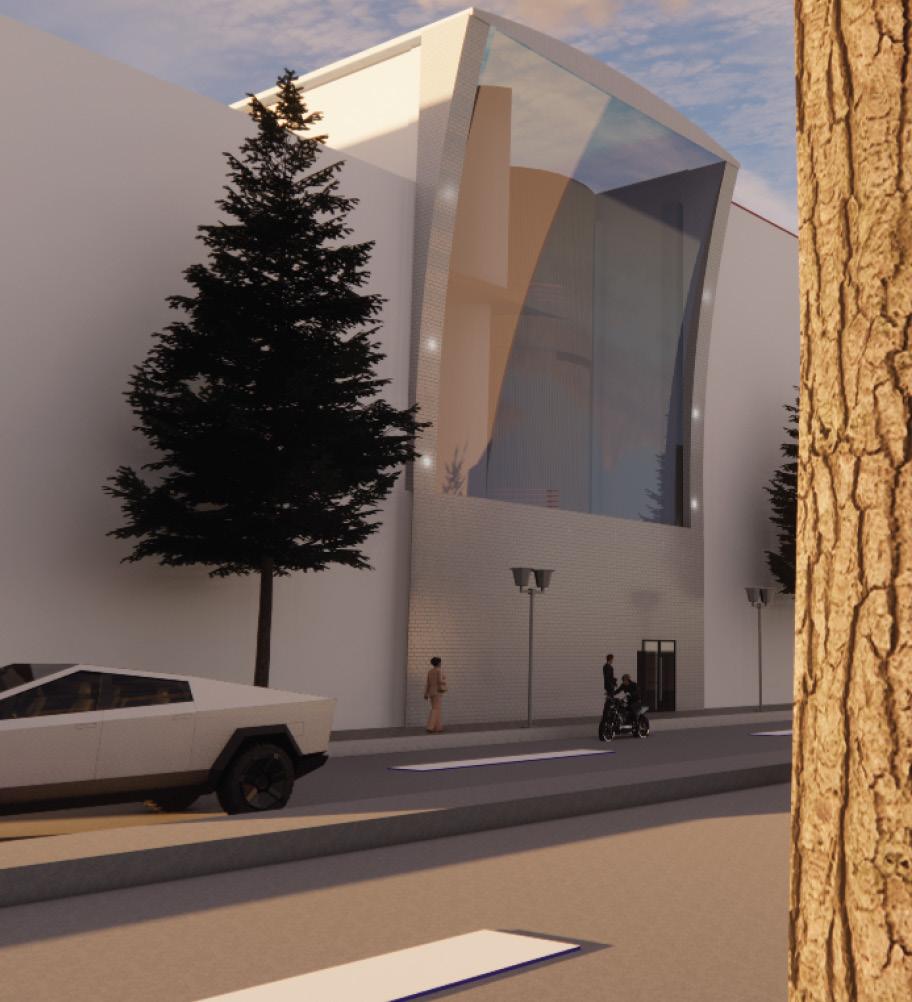 In this gallery, I wanted to build a curvature, a curve that surrounds the gallery from the inside and outside, providing the outside perspective an elegant and modern look while also allowing particular areas for special gallery pieces inside to boost the curiosity of visitors and the value of the pieces.