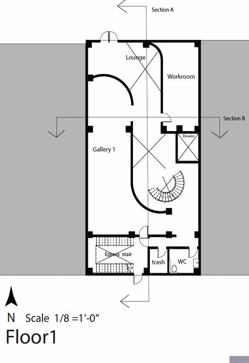 The primary goal of this project is to build a vertical ART GALLERY in Washington, DC. It was necessary to find visual and physical spatial links between different layers of space. The artwork will mostly consist of high-quality works ranging from 2D art to modest sculptural work.