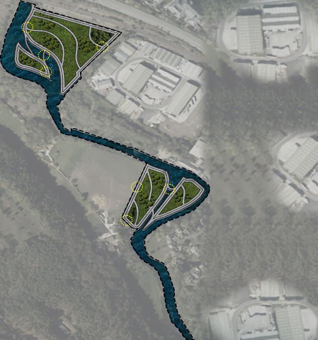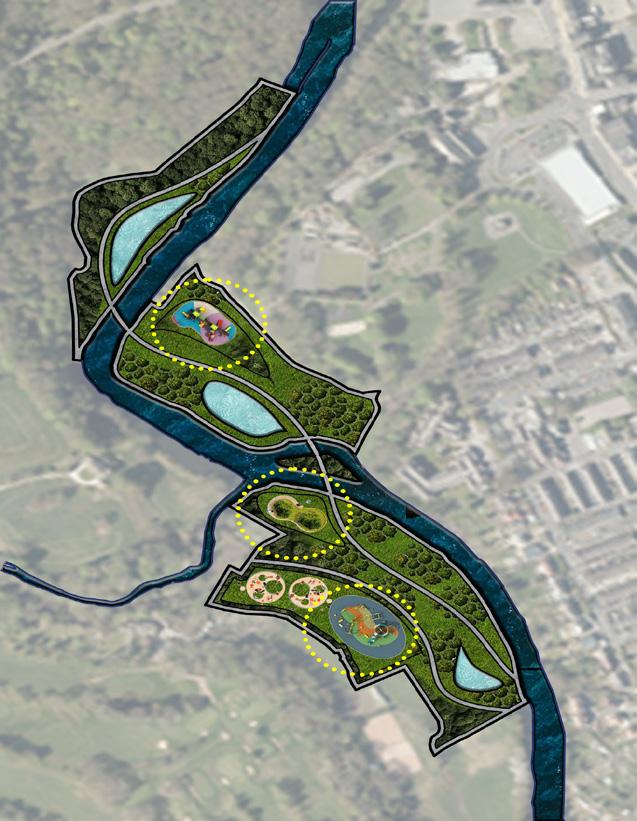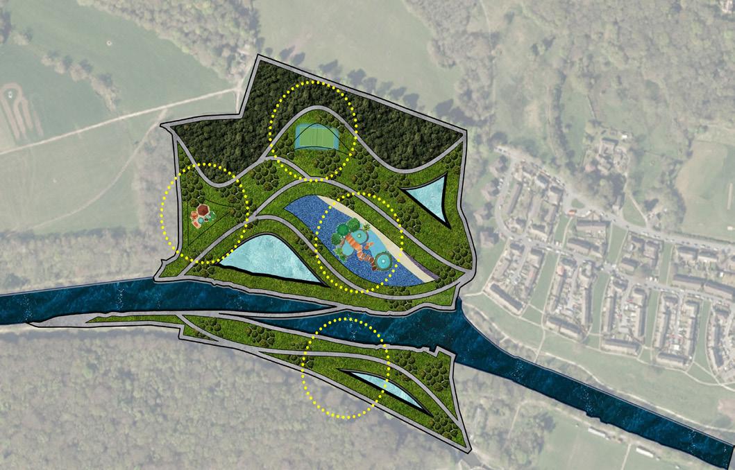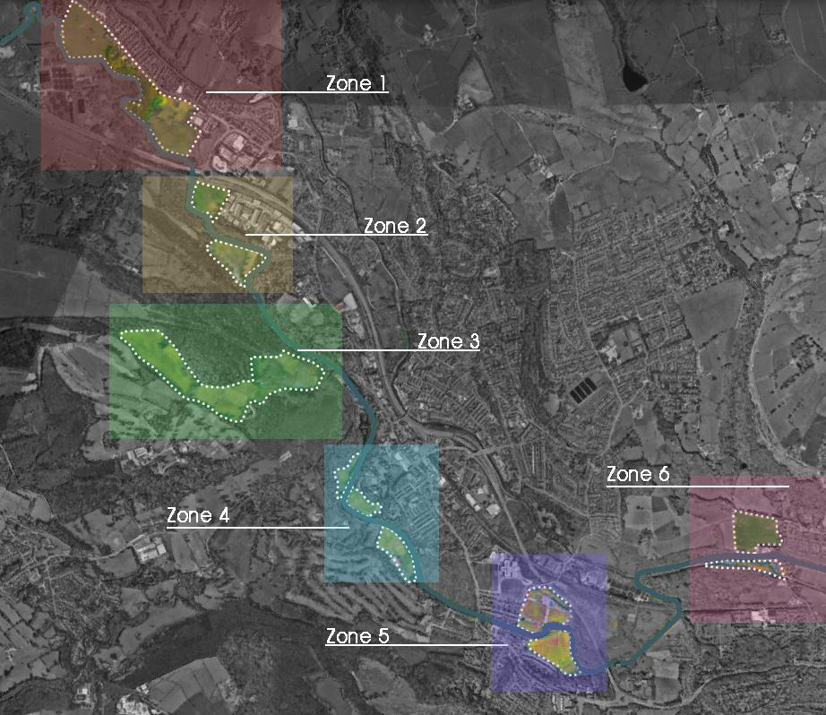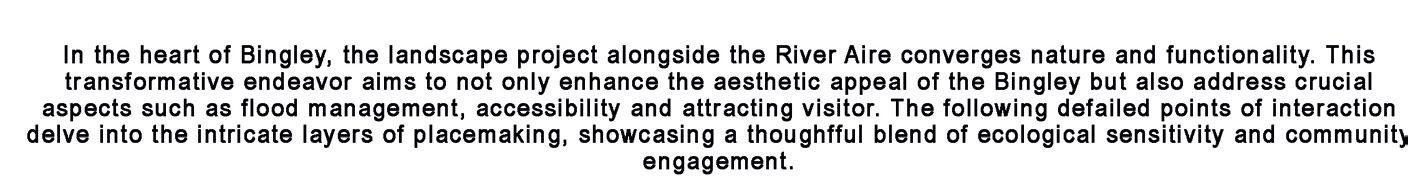 Following a meticulous analysis of the residual lands along the River Aire, we propose a nuanced division into 6 distinct zones, each earmarked for specific programmatic and landscape interventions. These delineated zones are envisioned as bespoke properties, each boasting unique characteristics to enhance both the attractiveness and accessibility of Bingley.