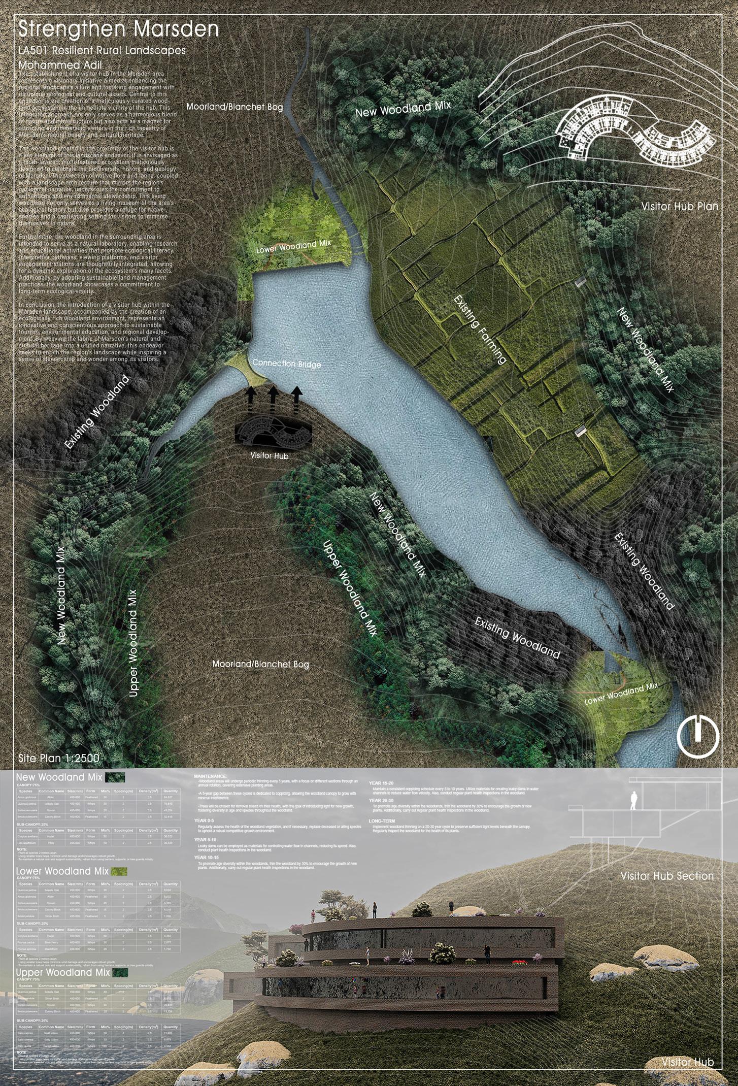 The establishment of a visitor hub in the Marsden area represents a visionary initiative aimed at enhancing the regional landscape’s allure and fostering engagement with its unique ecological and cultural assets. Central to this endeavor is the creation of a meticulously curated woodland ecosystem in the immediate vicinity of the hub. This integrated approach not only serves as a harmonious blendof nature and infrastructure but also acts as a magnet for attracting and immersing visitors in the rich tapestry of Marsden’s natural beauty and cultural heritage. The woodland created in the proximity of the visitor hub is a key element of this landscape endeavor. It is envisaged as a multi-layered, multi-textured ecosystem meticulously designed to celebrate the biodiversity, history, and geology of Mar den. The selection of native flora and fauna, coupled with a landscape architecture that mirrors the region’s geological narrative, underscores the commitment to authenticity and environmental stewardship. This living woodland not only serves as a living museum of the area’s ecological history but also provides a refuge for native species and a captivating setting for visitors to immerse themselves in nature.