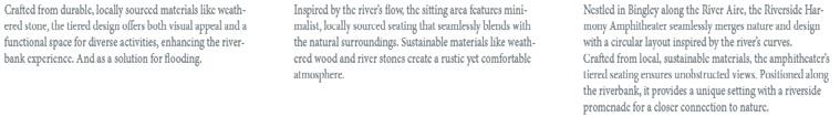 The intention is to create a network of interconnected yet individually captivating zones, contributing collectively to the revitalization of the River Aire corridor and elevating Bingley’s appeal. This landscape architecture strategy embraces the inherent qualities of each parcel, weaving them into the fabric of the town while simultaneously enhancing its overall accessibility and attractiveness.