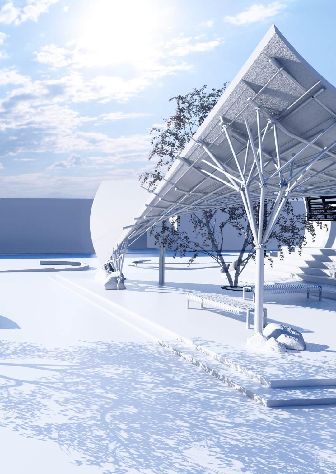 Incorporating the concept of hedonistic sustainability, the design features vibrant green spaces and outdoor areas on the roof, which serve as a venue for community engagement and awareness on sustainability. This concept challenges the idea that sustainability must be dull or restrictive, promoting a joyful and interactive experience. Inspired by Bjarke Ingels’ Copenhagen power plant, the design marries functionality with a dynamic, enjoyable environment.